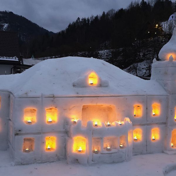 Dvorec Gutenbuchel v sneženi podobi