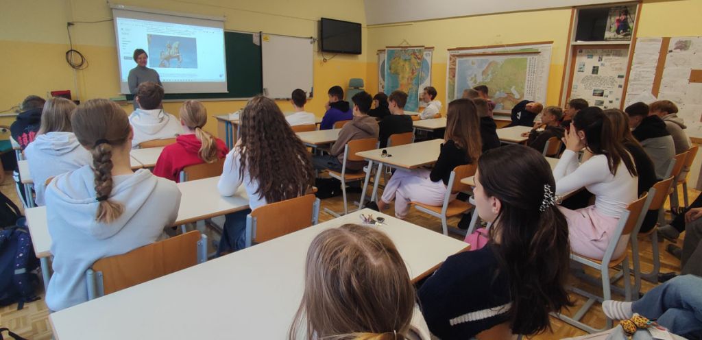 Šmartno ob Paki, 24. novembra – Pretekli ponedeljek se je med učenci Osnovne šole bratov Letonja Šmartno ob Paki mudila podpredsednica Zveze društev general Maister in članica Upravnega odbora Šaleškega društva general Maister Velenje Mojca Ževart. Ne po naključju. Dan po državnem prazniku, dnevu Rudolfa Maistra, je z učenci devetih razredov spregovorila o pomenu tega in drugih državnih praznikov ter osvetlila življenje in delo velikega Slovenca. Ker je letošnji praznik zaznamoval tudi referendum, so nekaj besed namenili še vrednotam demokracije ter vlogi aktivnega državljanstva v družbi. Učno uro ob dnevu generala Maistra so v omenjeni osnovni šoli v sodelovanju s Šaleškim društvom general Maister Velenje prvič izvedli lani, v letu, ki ga je Vlada Republike Slovenije razglasila za Maistrovo leto.