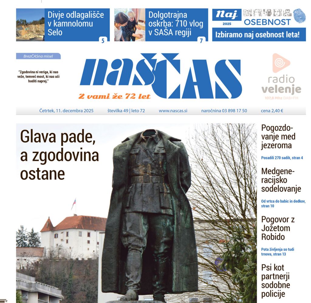 Izšla je nova številka tednika Naš čas. Glava pade, zgodovina ostane! Nas mora biti zgodovine sram? Preverili smo kako dejanje obglavljenega Titovega spomenika komentirajo na velenjski občini? Kaj pravijo v opoziciji? Kdo je storilec in kaj z dejanjem sporoča?