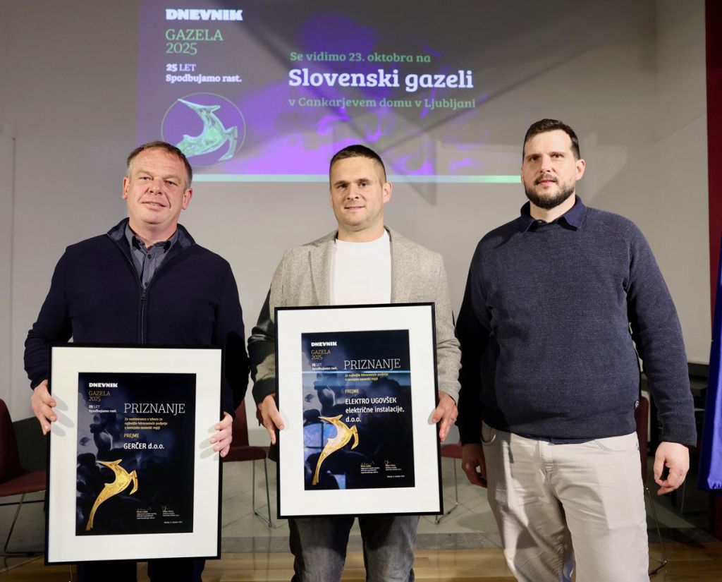 Velenje, 9. oktobra ‒ V Vili Bianci je potekal šesti regijski izbor v ciklu srečanj 25. generacije projekta Gazela. Strokovna komisija je med stotimi hitro rastočimi podjetji v regiji letos nominirala tri podjetja: Elektro Ugovšek z Ljubnega ob Savinji, ki se ukvarja z električnimi inštalacijami, Opticum iz Vojnika pod vodstvom Roka Teržana ter podjetje Gerčer iz Laškega, ki ga vodi Sašo Gerčer. Priznanje Savinjsko-zasavska gazela 2025 je prejelo podjetje Elektro Ugovšek, prevzel pa ga je direktor Klemen Ugovšek.