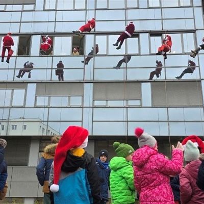 Praznični spust Božičkov razveselil male bolnike v Slovenj Gradcu